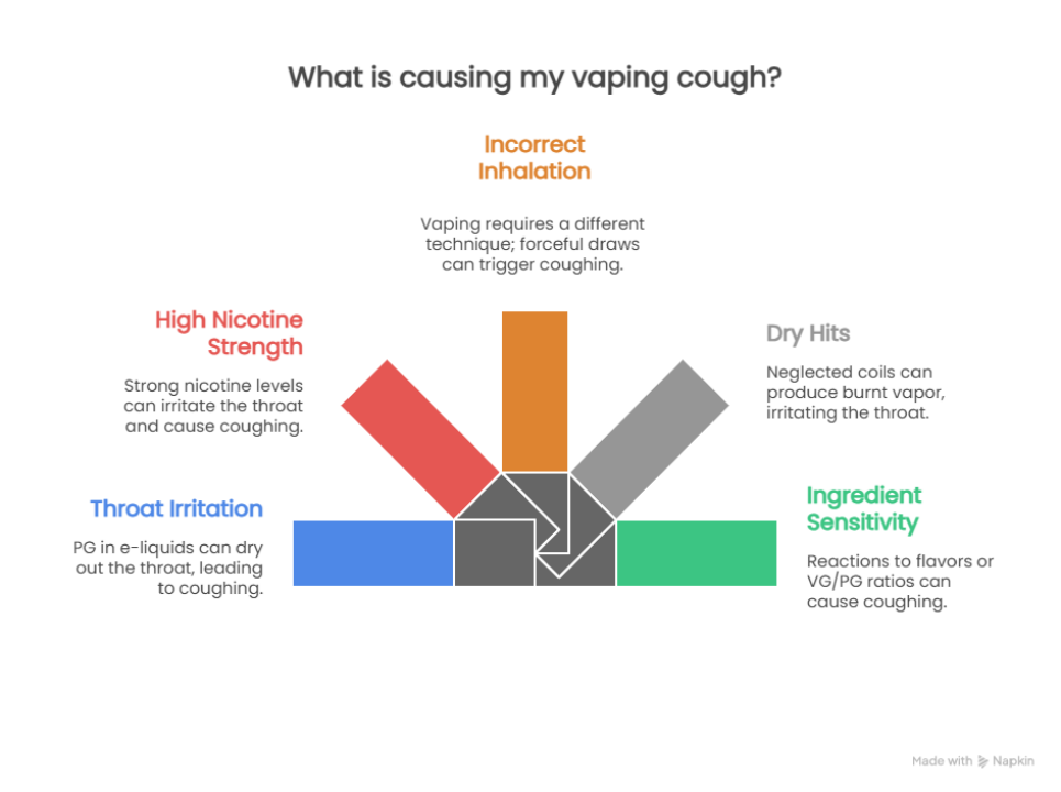 Vaping uses a different draw style than traditional cigarettes. Many beginners pull too quickly or too forcefully, which sends a strong stream of vapor into the throat and triggers an instant cough.