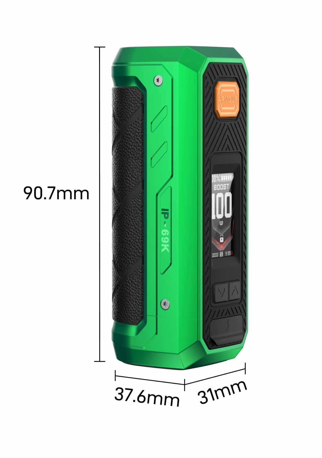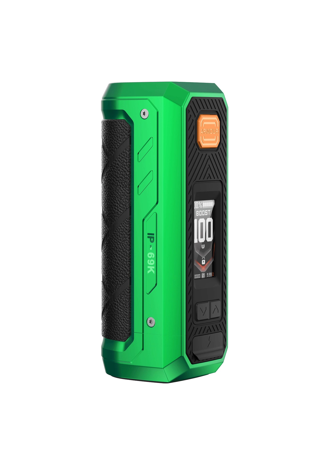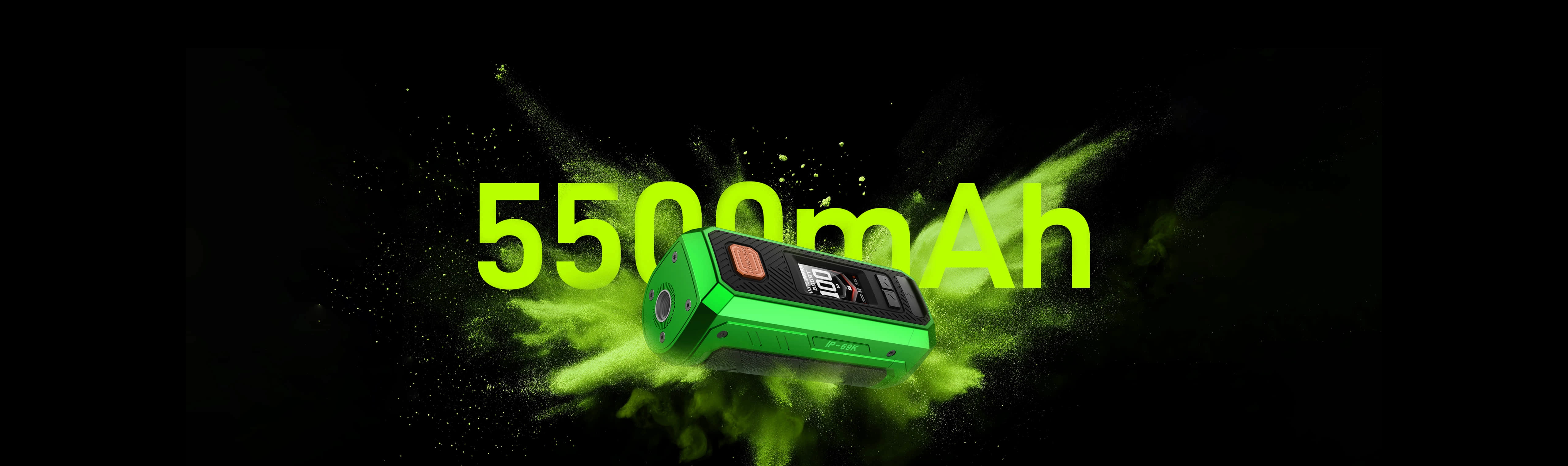 Its powerful 5500mAh mega battery provides battery life close to that of two 18650 batteries while maintaining a compact built-in design. Certified with IP68, IP69K, and MIL-STD-810H, it ensures excellent protection — waterproof, waterjet-proof, dustproof, shockproof, and resistant to 1.2m military-grade drops. Powered by the AXON Chip, the upgraded Boost Mode delivers stronger bursts and a superior vaping experience.